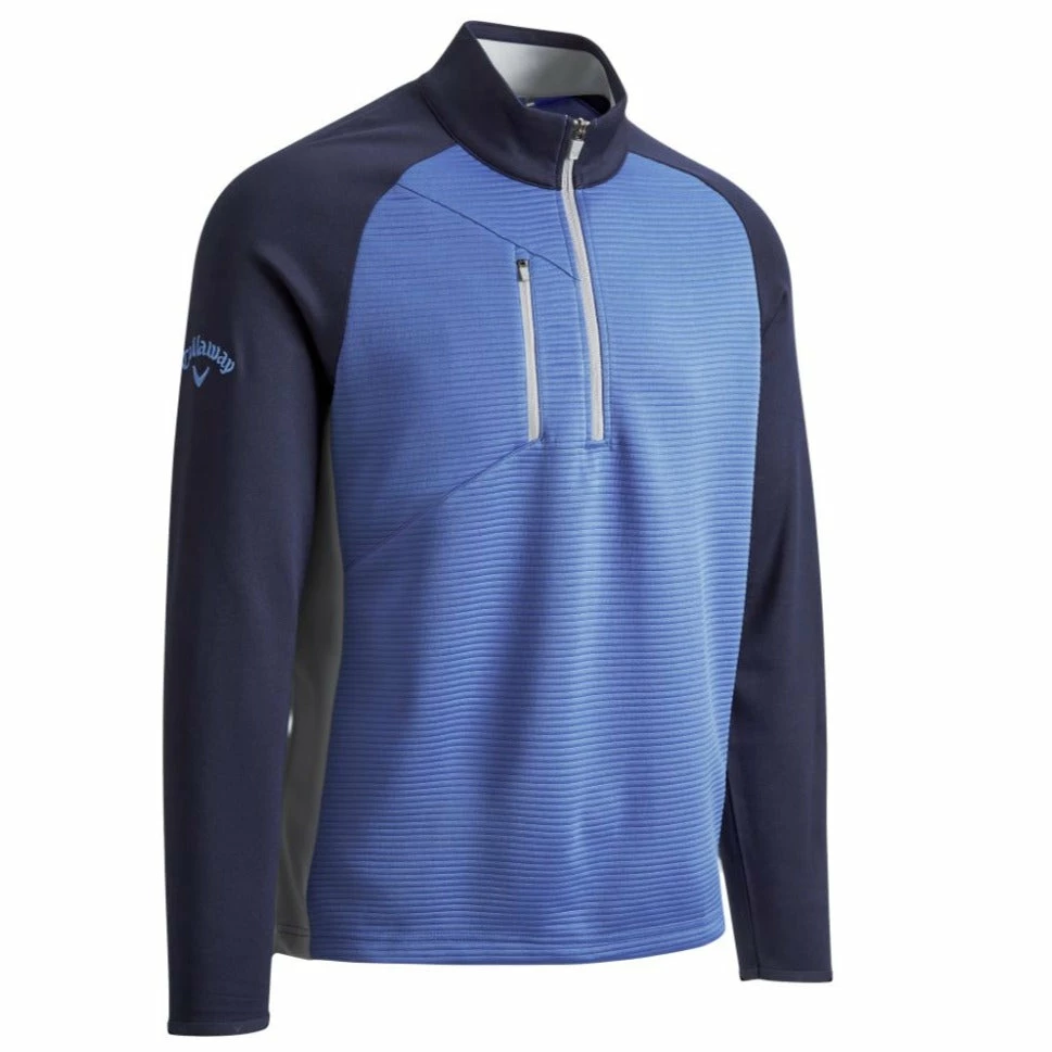 This versatile Callaway Ottoman Fleece 1/4 Zip Golf Sweater is super stretchy, lightweight and is finished with iconic Tour branding for a stylish blocked design that looks great on and off the course.